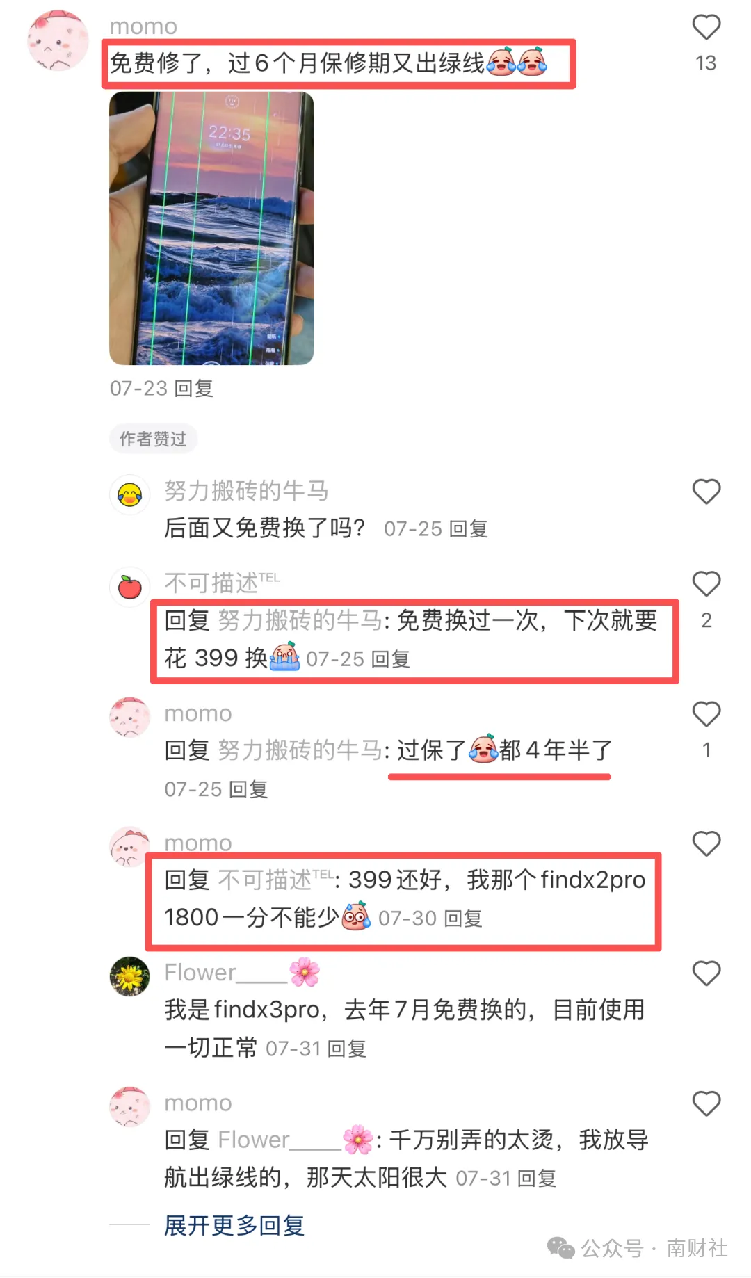 售后被指中外双标现在,还有国际市场。中高端线系列,手机厂商高端线纷纷正在影像能力上发力,新产物刚发布,社交上对于OPPO手机屏幕呈现“绿线”的吐槽就屡见不鲜。OPPO首席产物官刘做虎又打出了“万元内最值得采办的相机”的标语。其手机毛病明明发生正在4年保质期内,导致绿线变乱频发。2025年,一加的8-13系列。